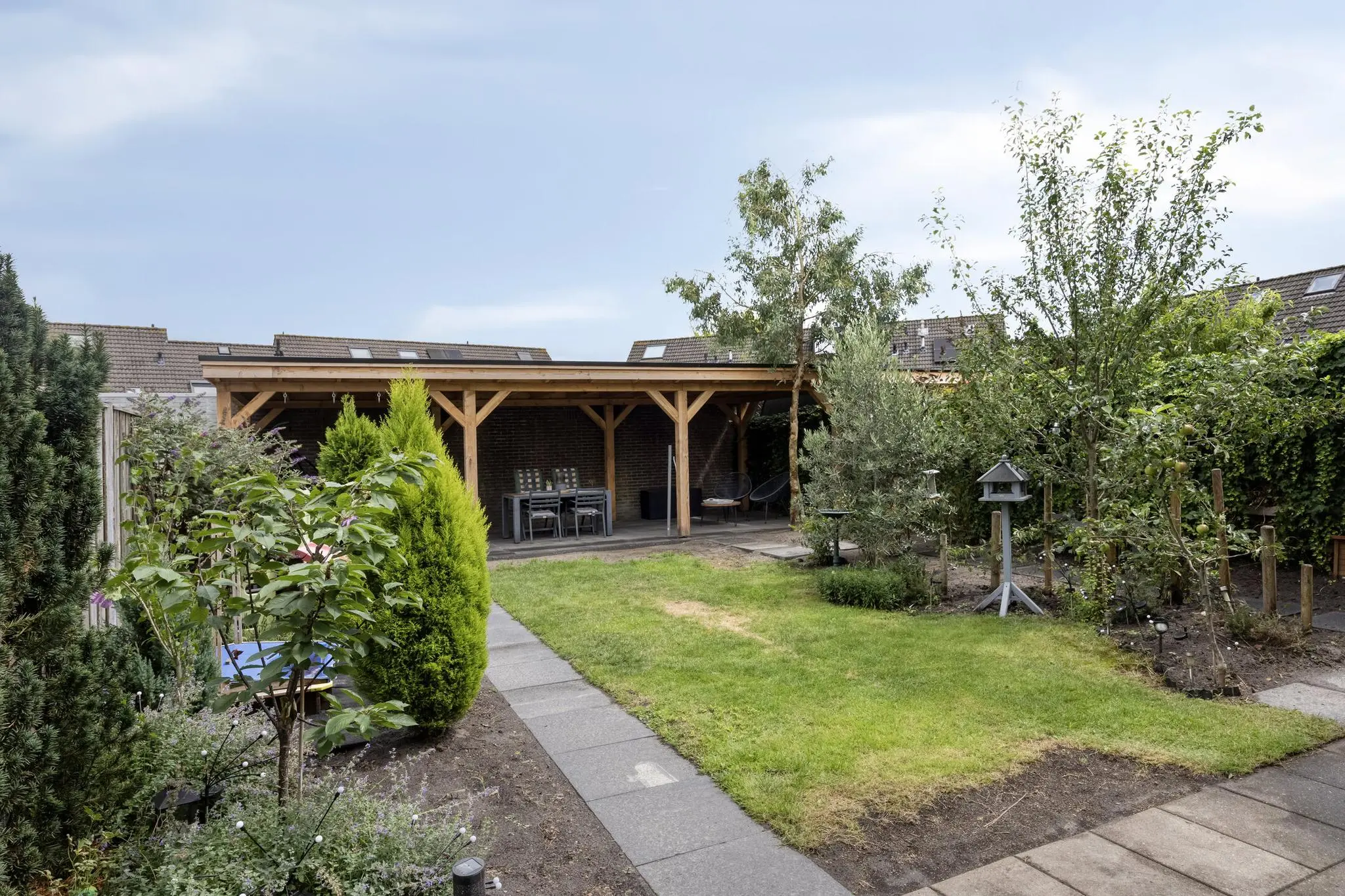 • Grote overkapping van 4 x 10 meter – lekker buiten zitten, ook als het regent
