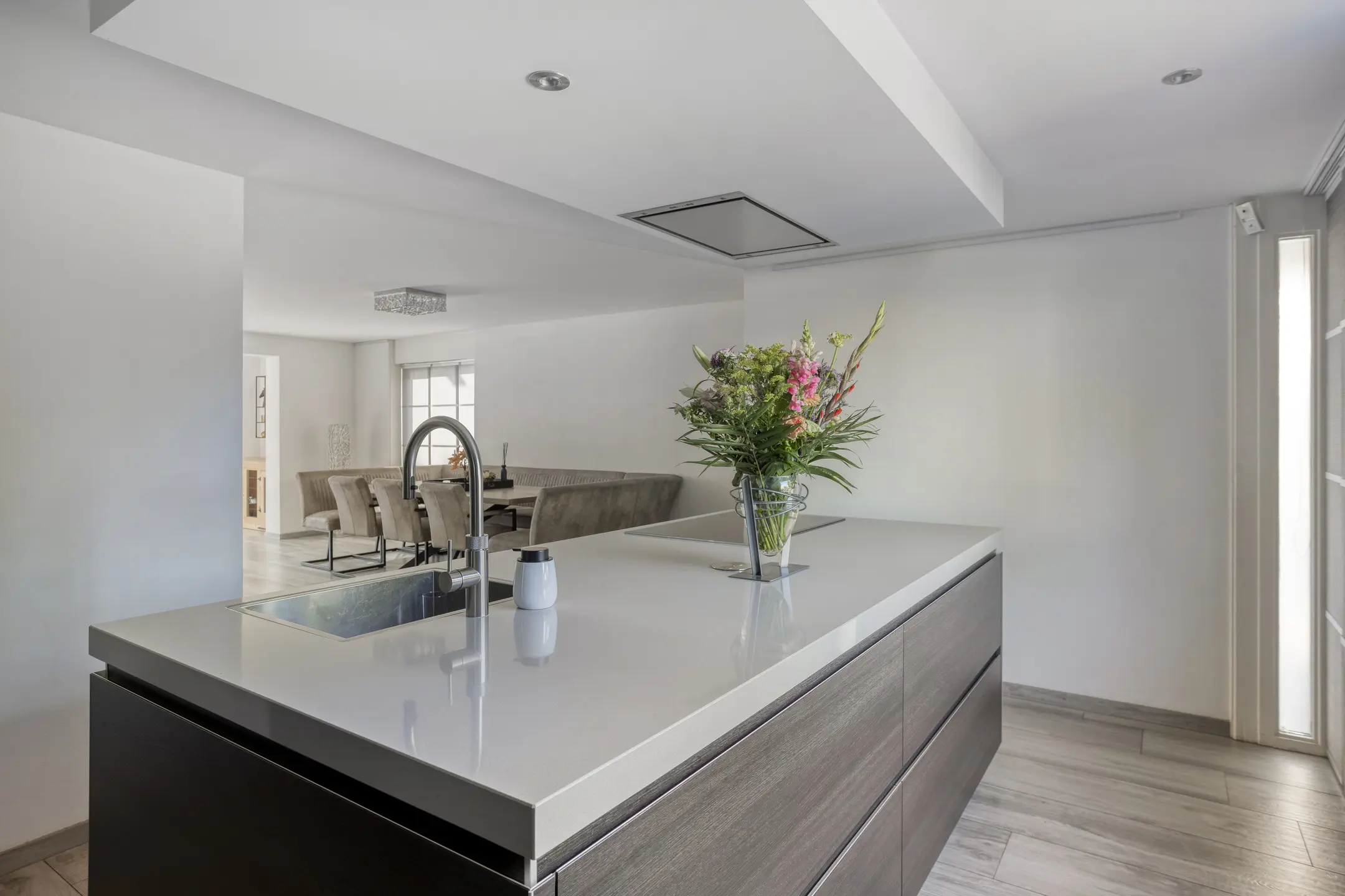 • Hou je van een moderne woonkeuken met kookeiland, Quooker en ingebouwd koffiezetapparaat?
