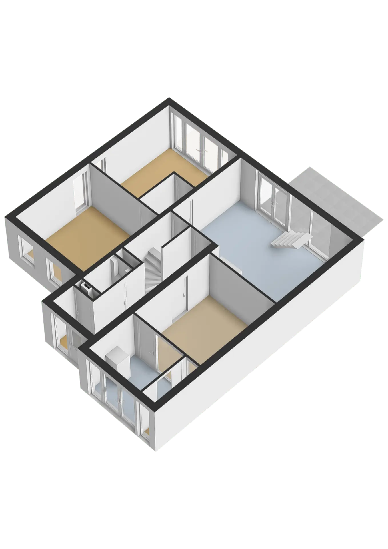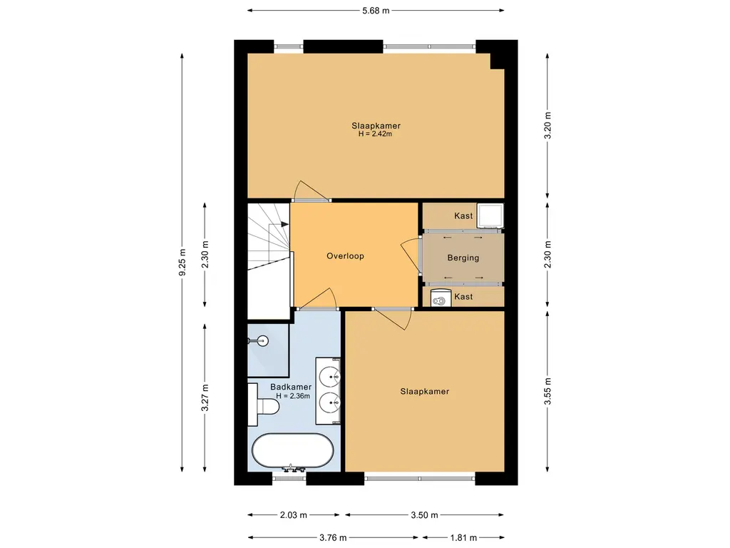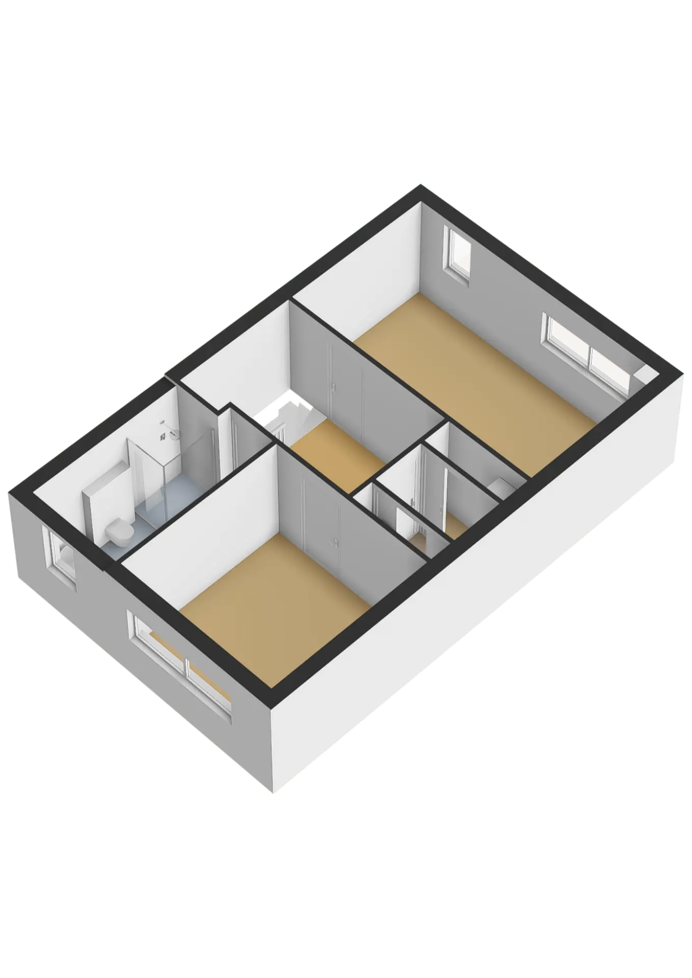 Tweede verdieping: 2 slaapkamers, berging en luxe badkamer (2022)