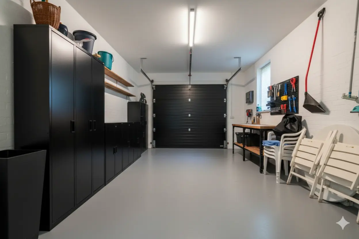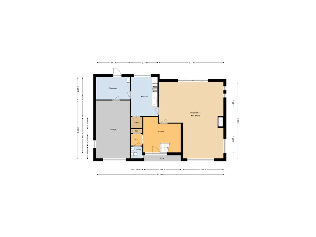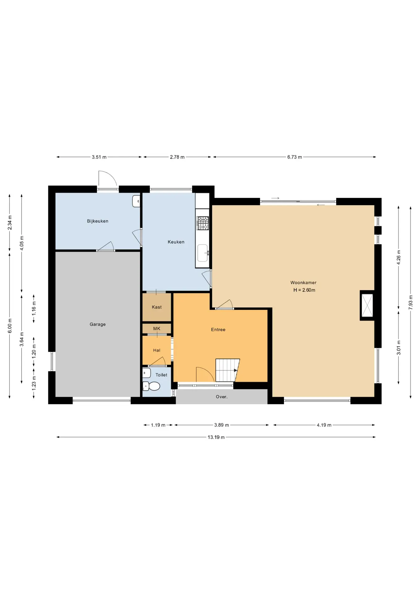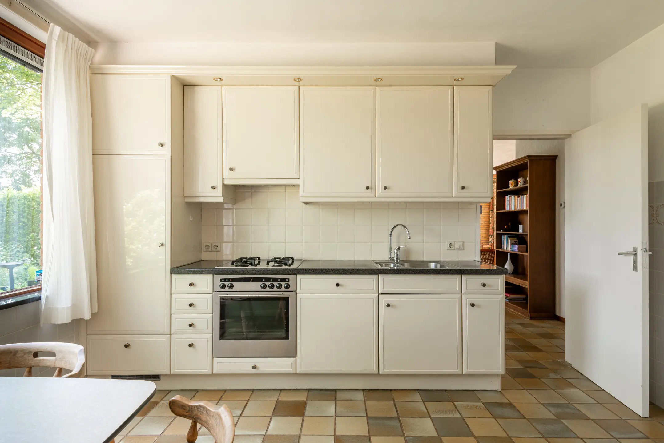 De keuken is functioneel en biedt direct toegang tot de bijkeuken, van waaruit je doorloopt naar de inpandige garage. Deze garage is royaal, verwarmd en ideaal voor hobbyruimte, extra opslag of het stallen van voertuigen. Ook biedt deze ruimte veel potentieel voor het realiseren van een kantoor of praktijk aan huis.