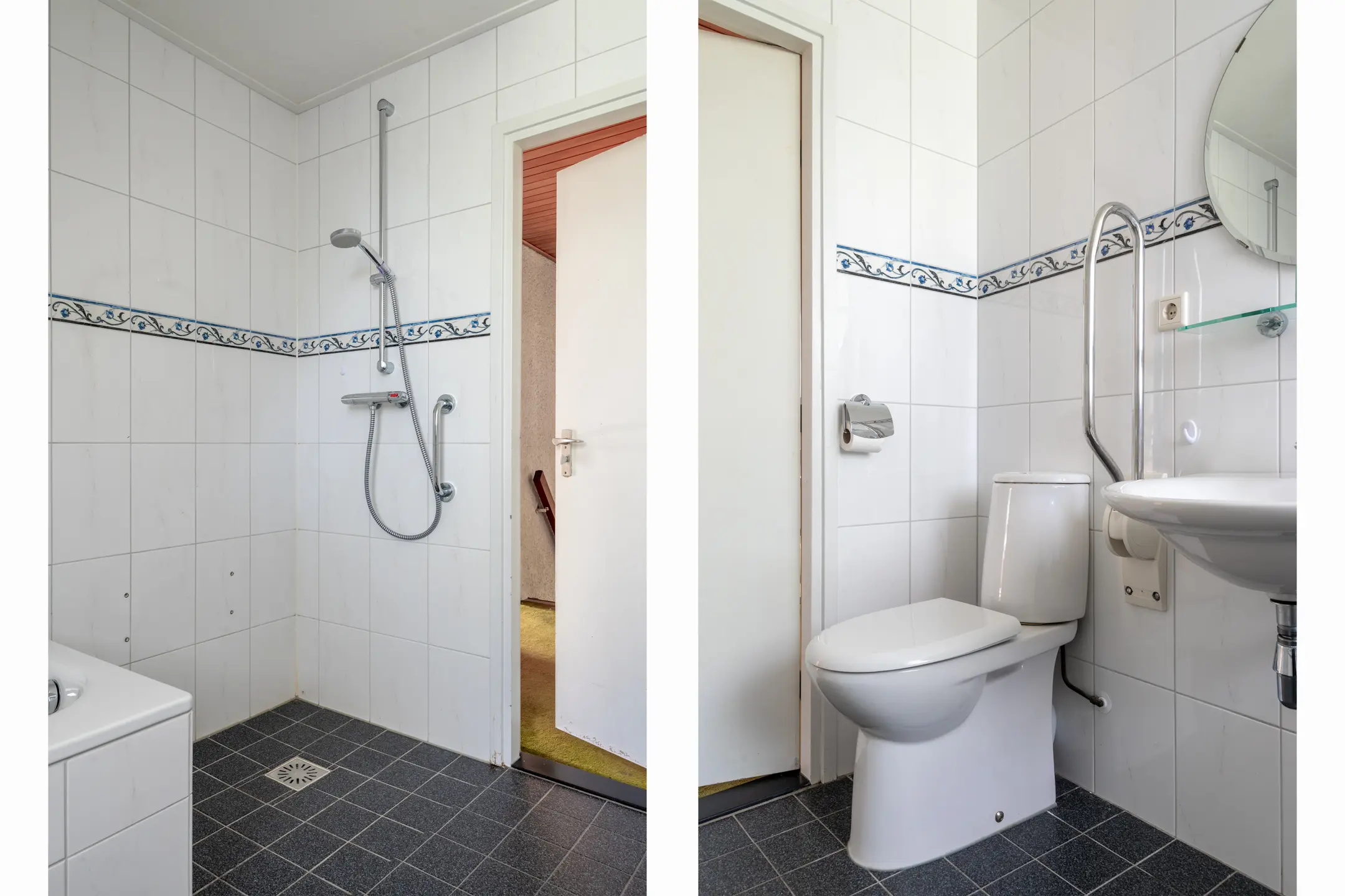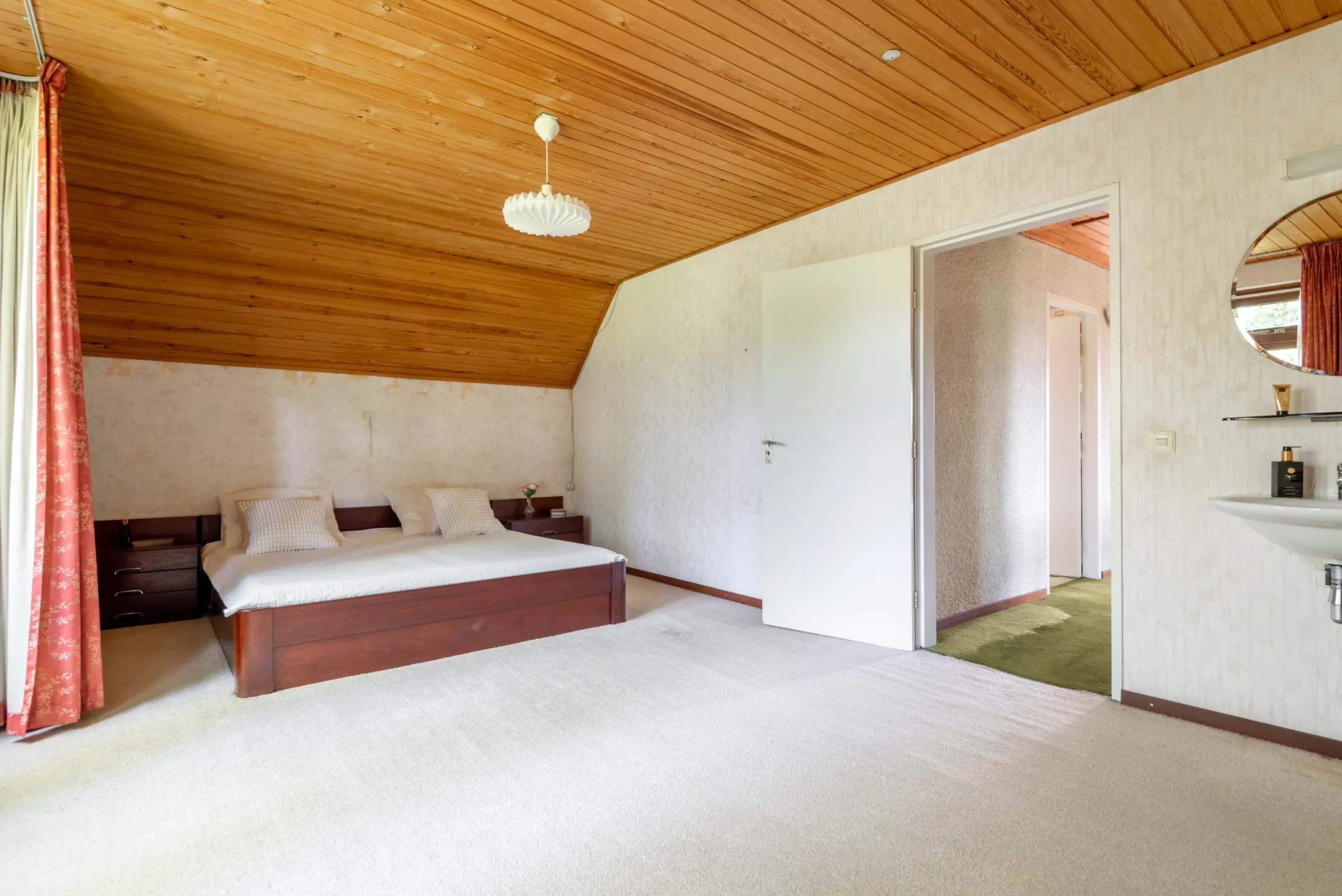 De ruime badkamer is compleet ingericht met een ligbad, aparte douche, tweede toilet en wastafel. Door het formaat is er bovendien ruimte voor modernisering naar jouw eigen wensen.