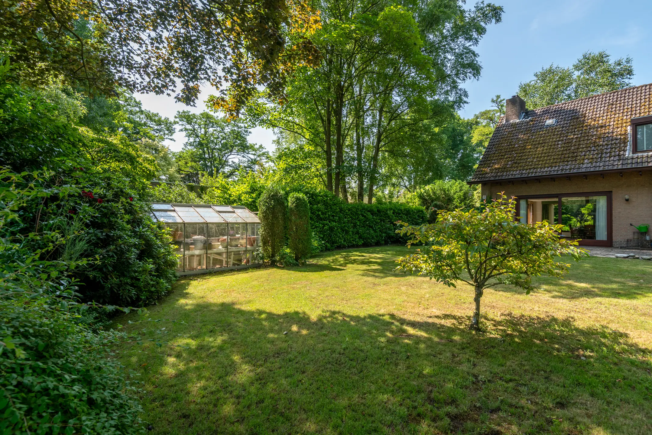 Het perceel van 992 m² biedt een tuin rondom de woning, met een fraai aangelegde voortuin, een zijtuin met oprit en een riante, volledig privacy biedende achtertuin. De achtertuin is bijzonder diep en grenst direct aan het buitengebied – een adembenemend uitzicht dat nooit verveelt. Hier kun je in alle rust genieten van zon, schaduw, vogels, en ruimte. Dankzij het grote perceeloppervlak zijn er talloze mogelijkheden om de tuin verder naar eigen wens in te richten: denk aan een zwembad, veranda, tuinkantoor of een moestuin.