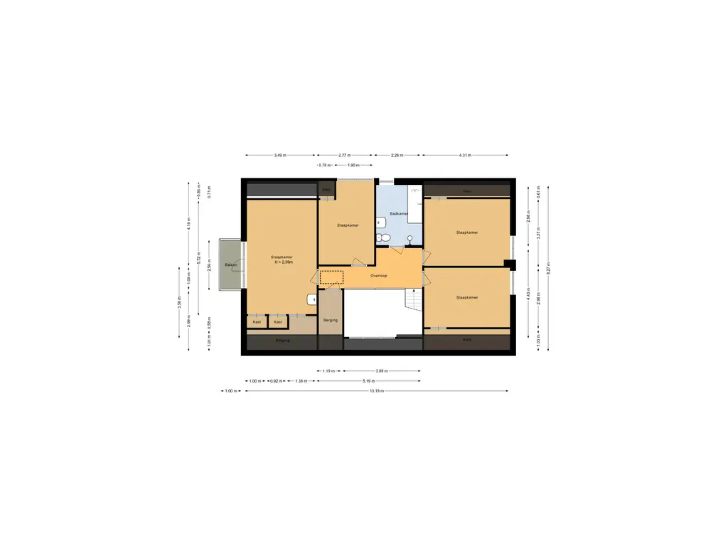 Op de eerste verdieping bevinden zich vier volwaardige slaapkamers. Eén van de kamers is voorzien van een eigen balkon – de perfecte plek voor een kopje koffie in de ochtendzon. De slaapkamers zijn stuk voor stuk ruim en praktisch in te richten. Dankzij de rechte gevels en ingebouwde kasten is er overal veel effectieve leefruimte en veel bergruimte.