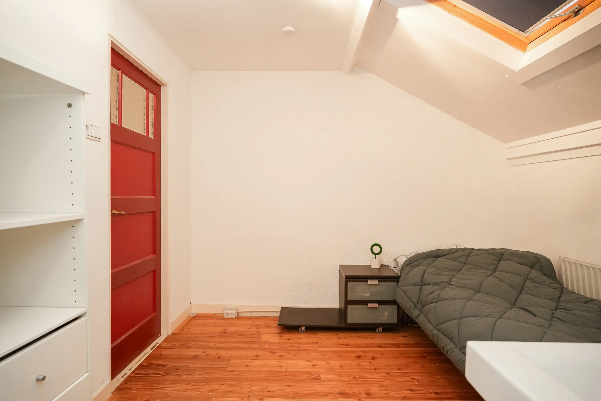 Een tweede slaapkamer aan de achterzijde, ideaal als logeerkamer, werkruimte of kinderkamer.