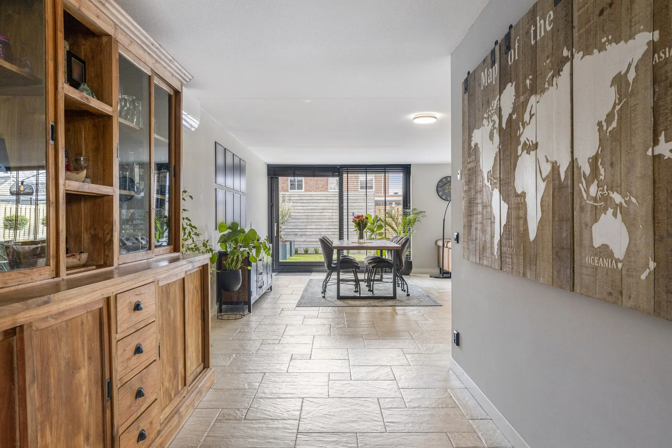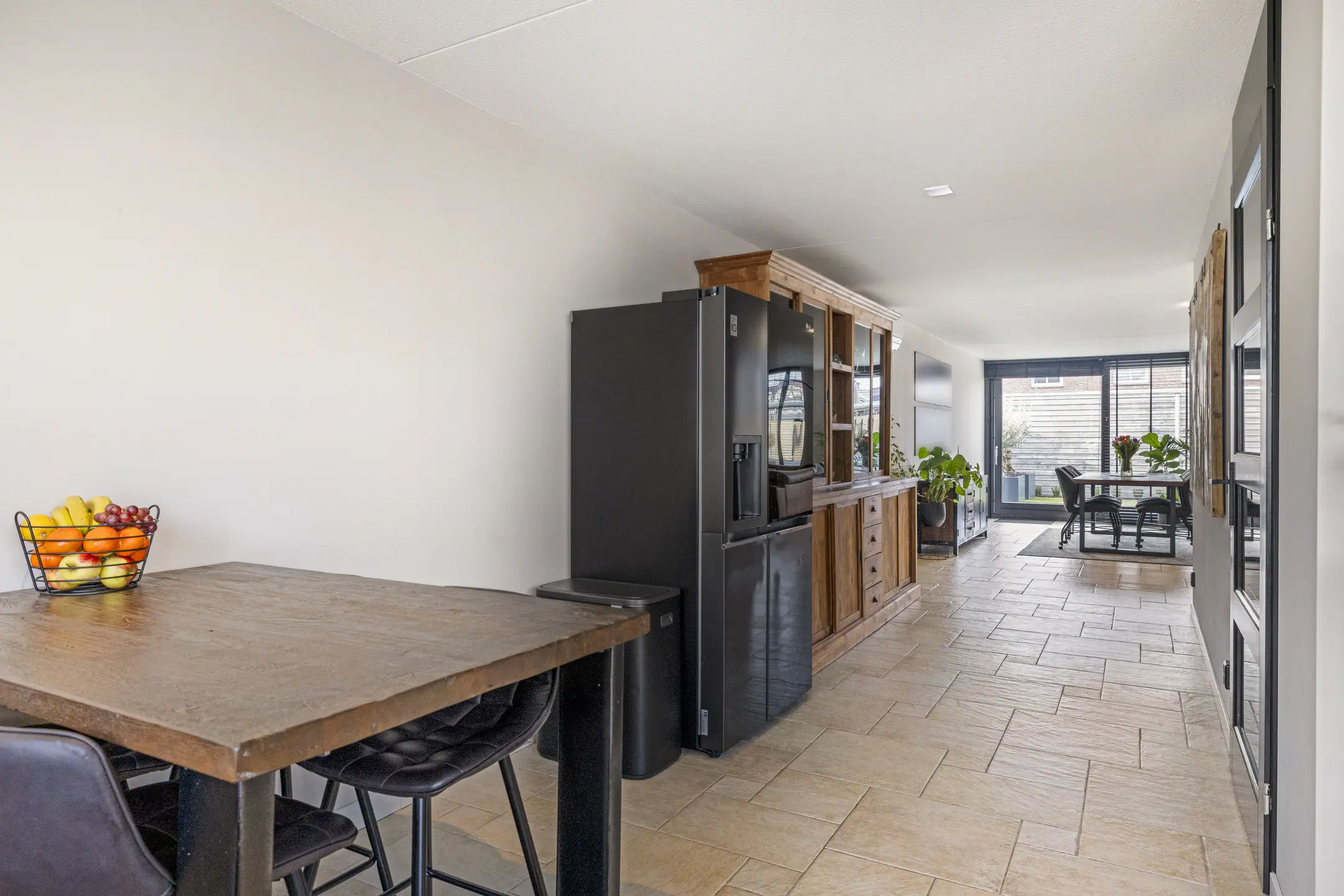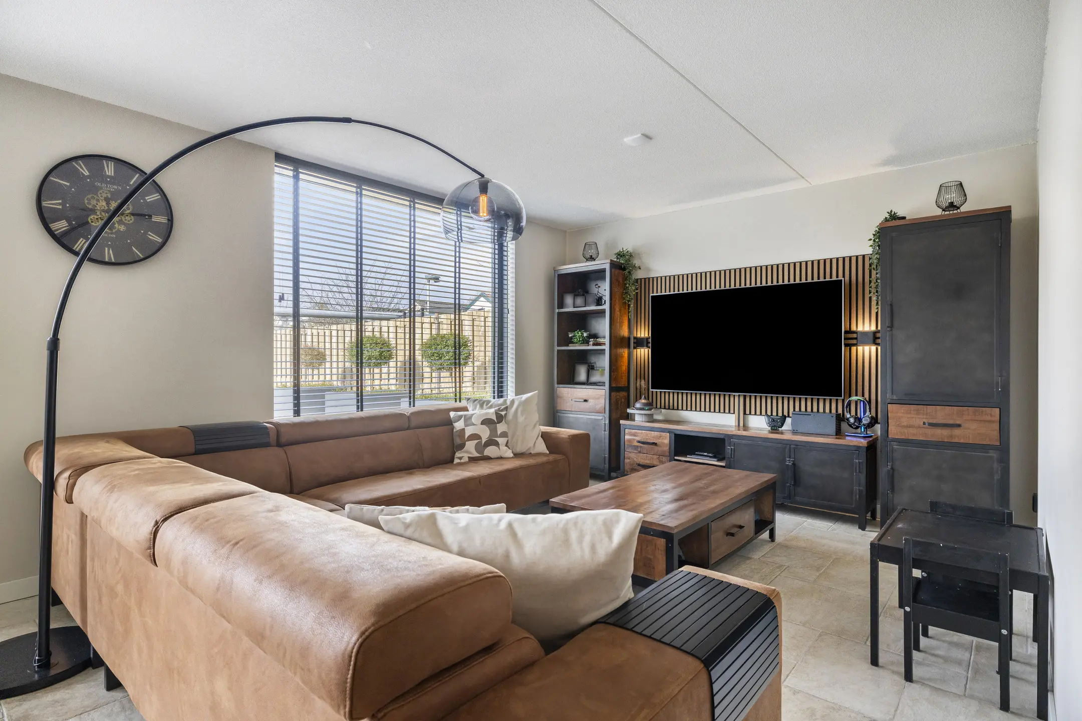 Woonkamer: Een heerlijk lichte en ruime woonkamer die voorzien is van vloerverwarming op warm water. De afwerking is modern met een plavuizen vloer.