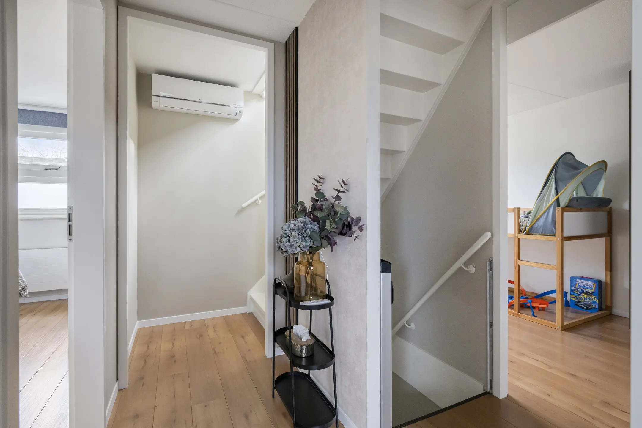 De woning beschikt over een volwaardige zolderverdieping met veel daglicht door de grote ramen. De zolder biedt mogelijkheden voor een extra slaapkamer of kantoorruimte.