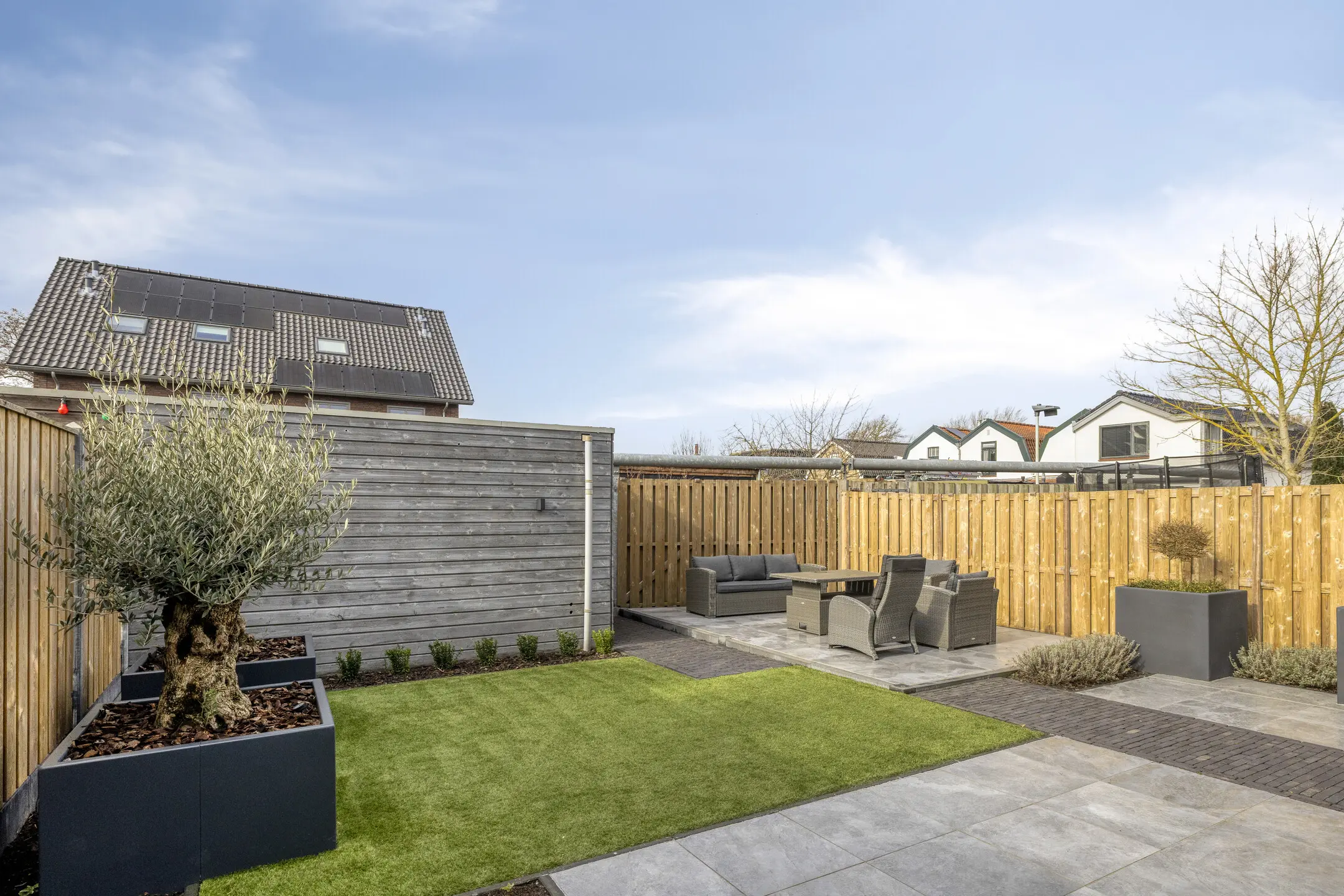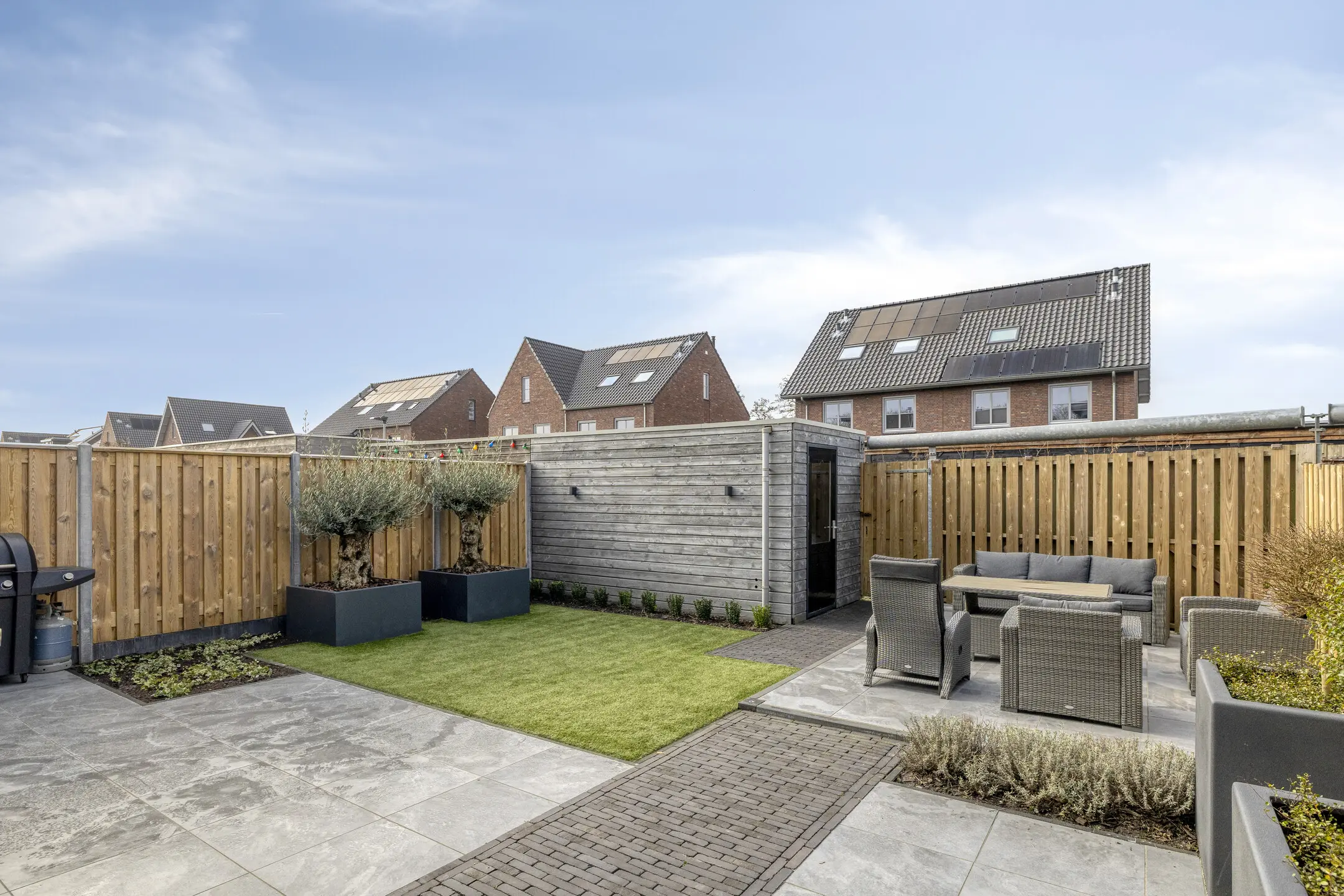 Berging: In de tuin bevindt zich tevens een houten berging voor extra opslag.