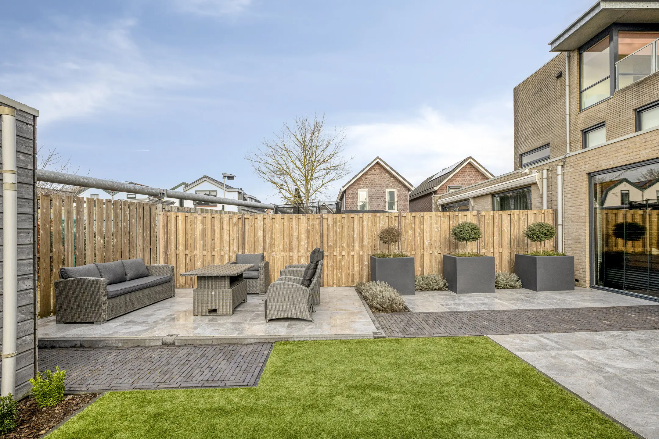 De Tuin: De tuin is verzorgd aangelegd met een combinatie van bestrating en beplanting. Er is een eigen achterom aanwezig, wat erg praktisch is voor fietsen of tuinafval.