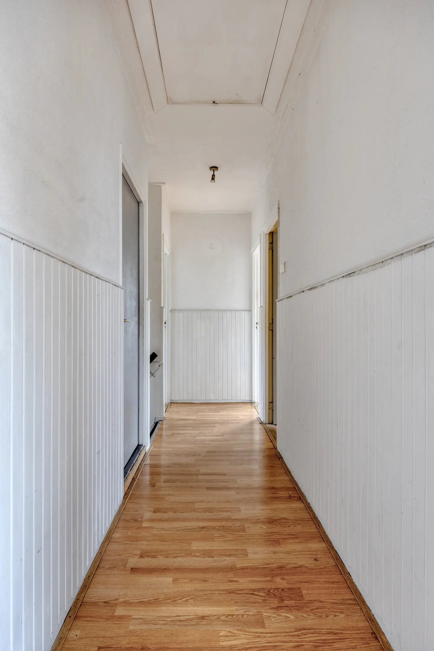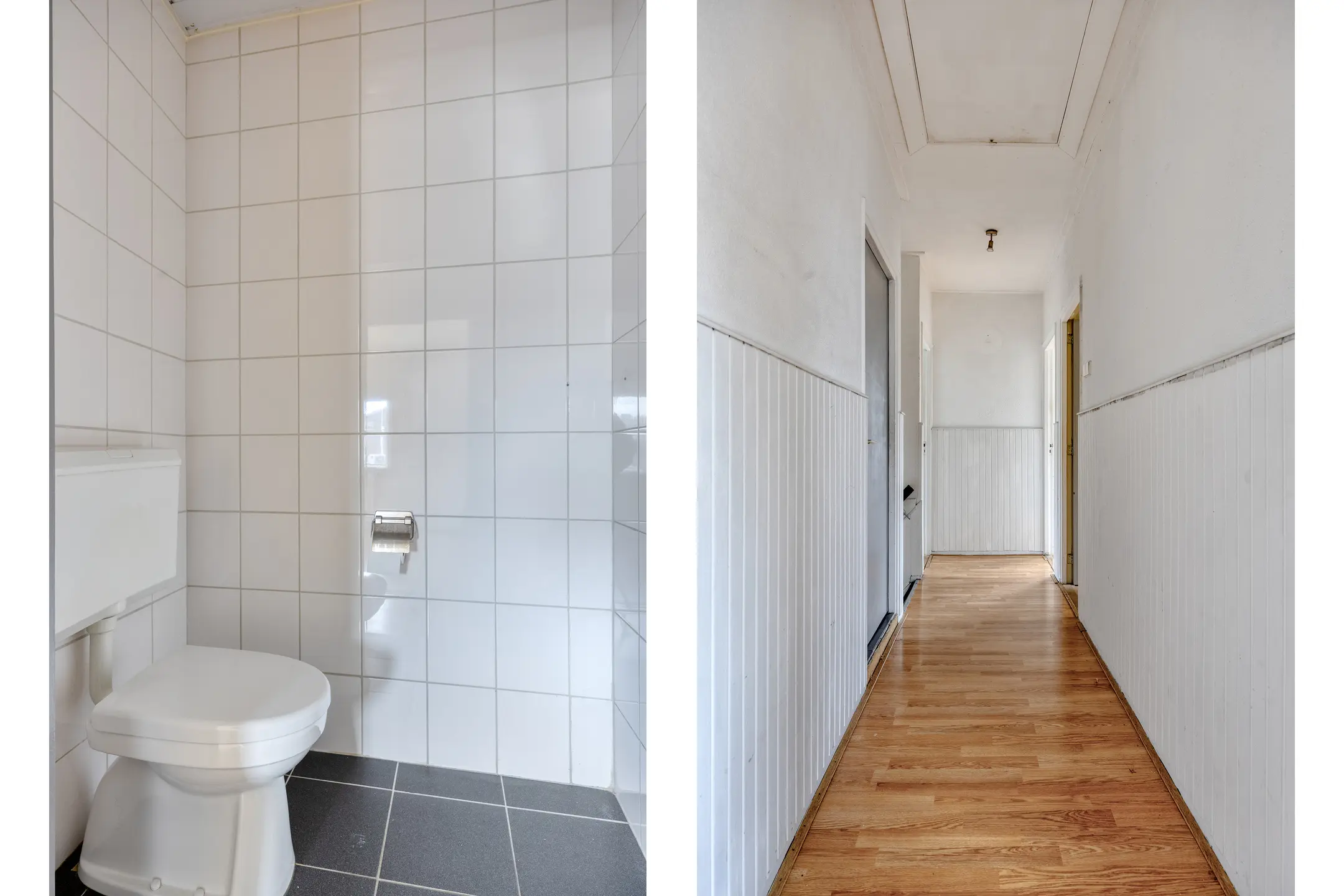 Op de eerste verdieping bevinden zich meerdere goed bemeten kamers, ideaal als slaapkamers, thuiskantoor of hobbyruimte. Door de rechte gevels is er veel praktische indelingsruimte beschikbaar. Licht en rust domineren op deze verdieping, wat zorgt voor een prettige sfeer. De zolder, bereikbaar met een vlizotrap, biedt extra opslagruimte en toekomstig potentieel. Voor wie verder wil uitbreiden of moderniseren, biedt deze verdieping voldoende mogelijkheden, uiteraard afhankelijk van de wensen en plannen van de koper.