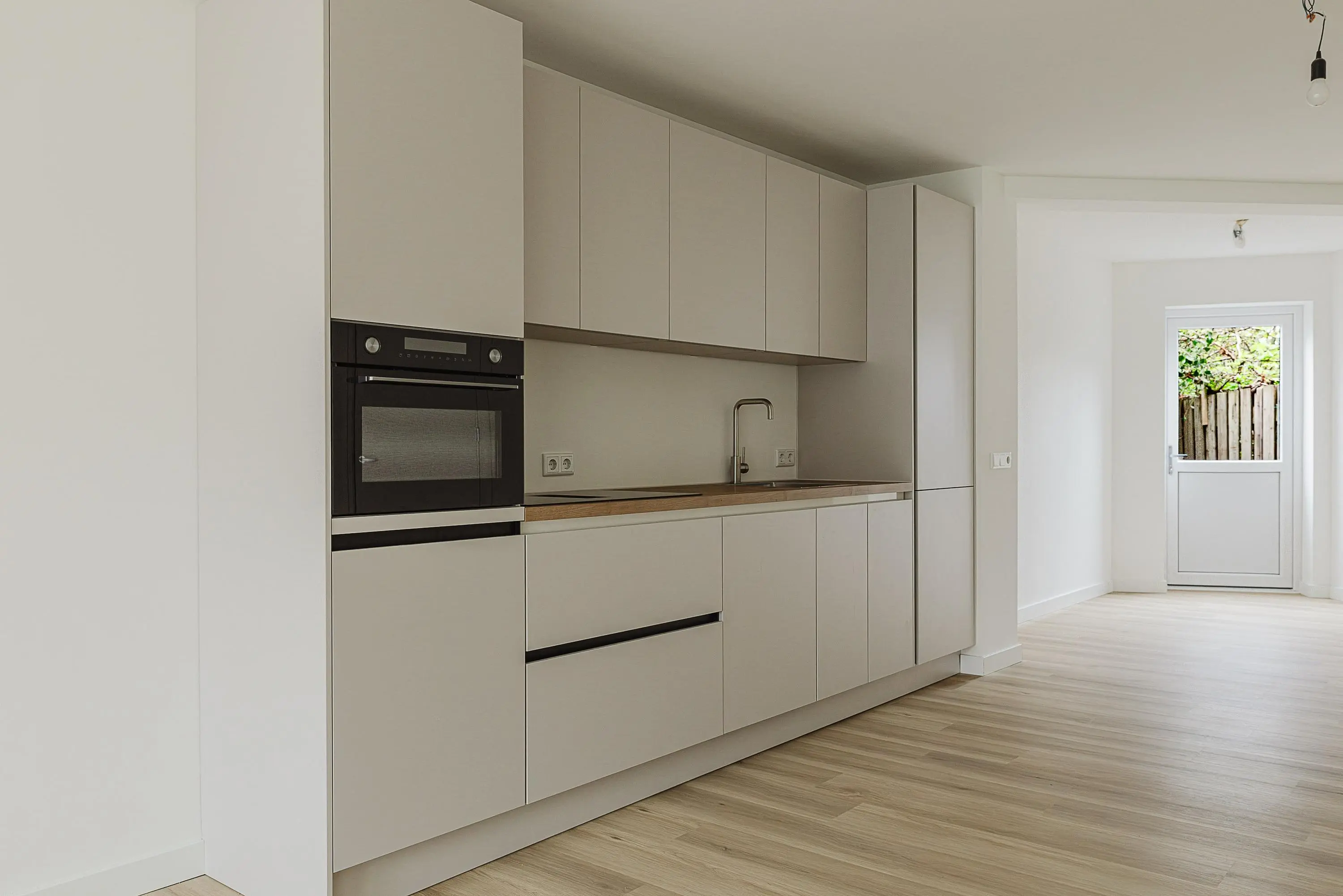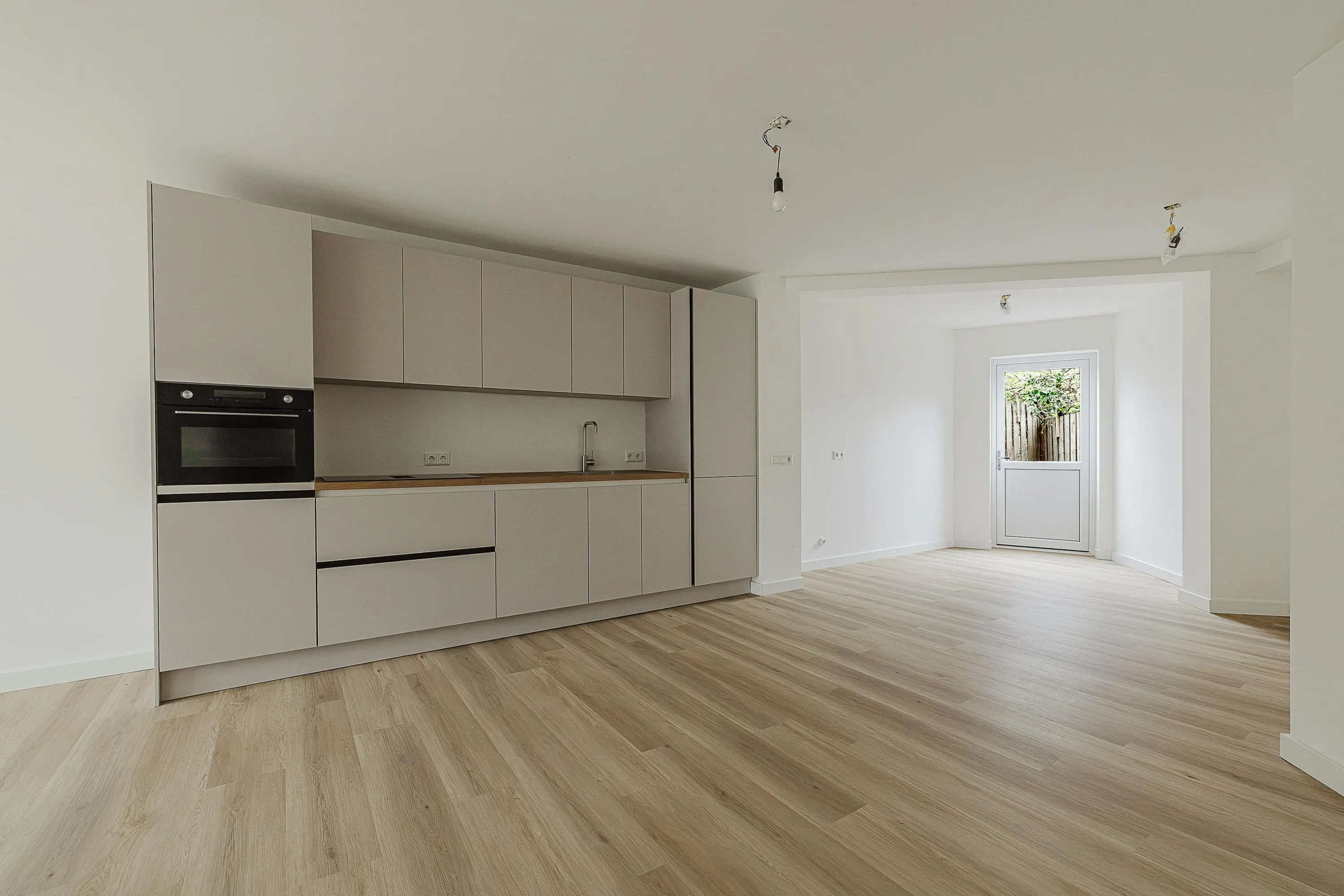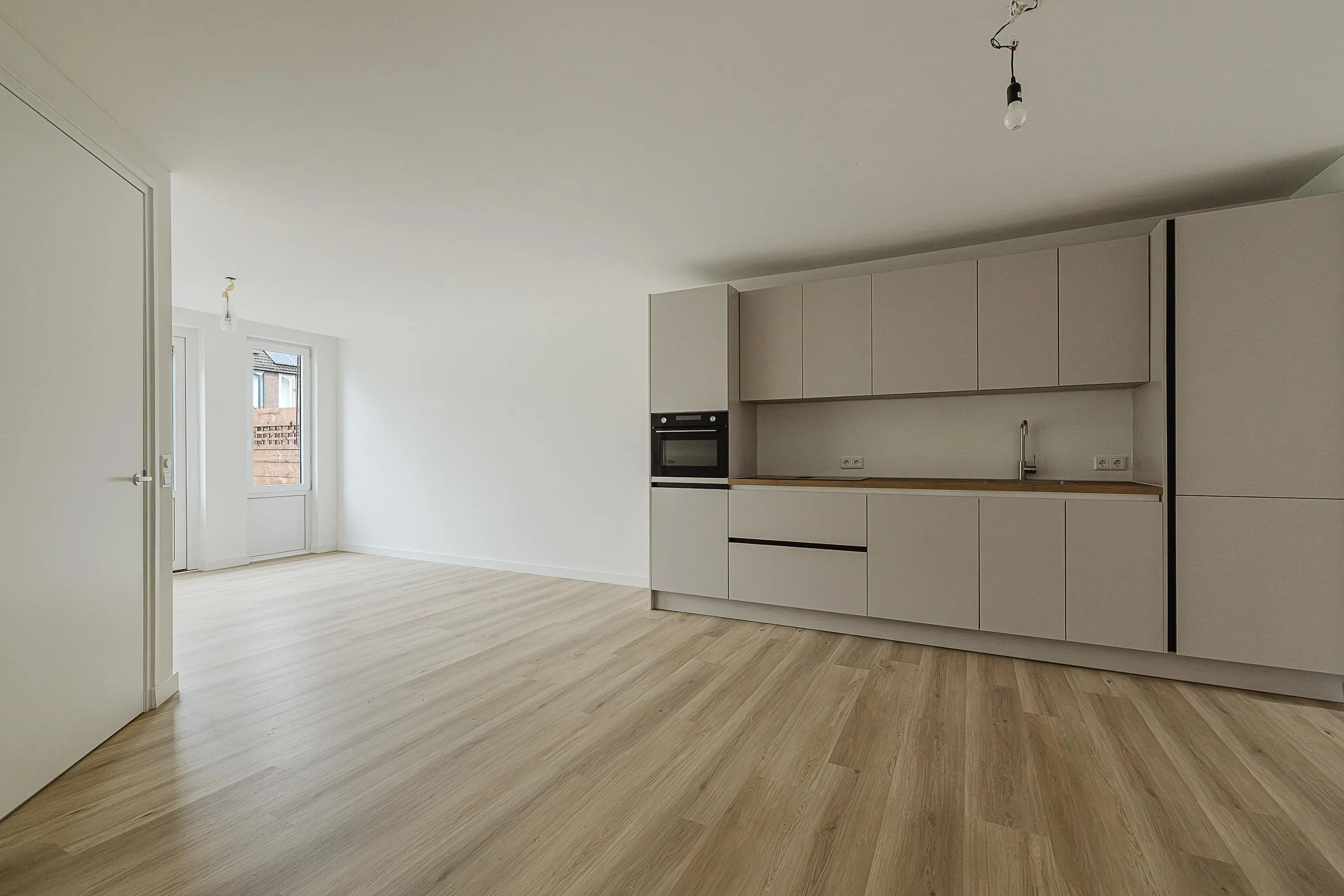 Bij binnenkomst valt direct de frisse en moderne afwerking op. Het appartement is recent volledig gerenoveerd en dat zie je terug in de strakke wanden, lichte vloeren en de verzorgde afwerking door de gehele woning.