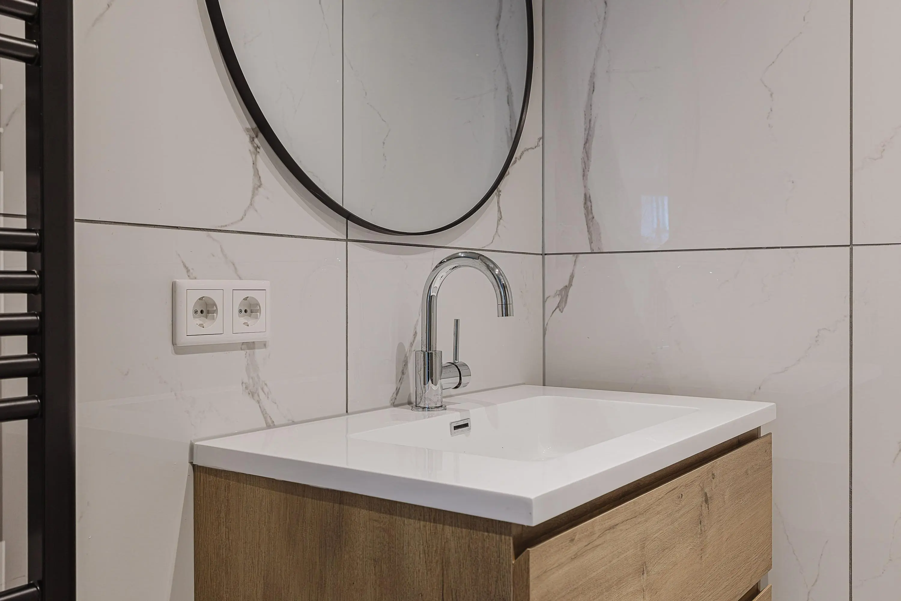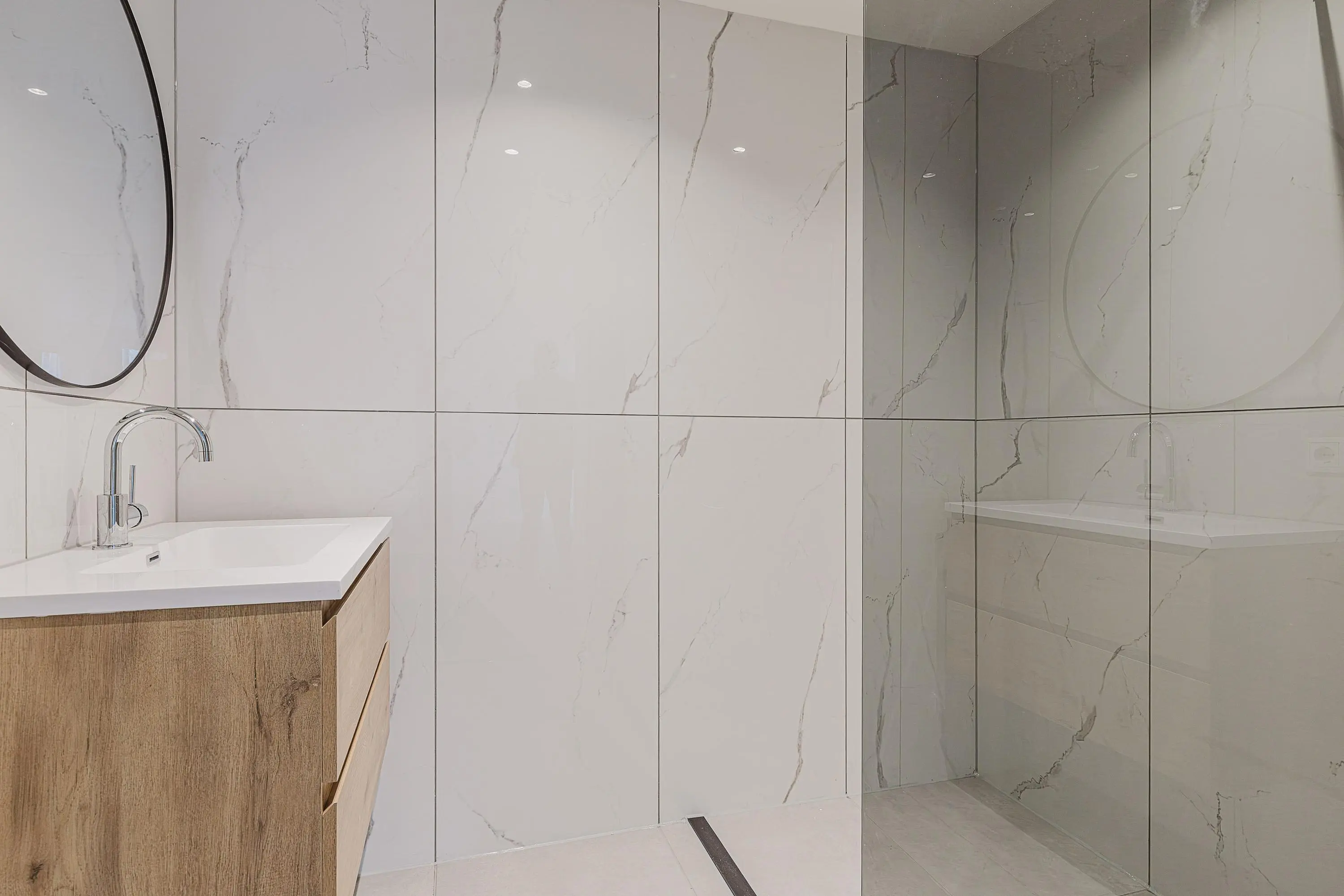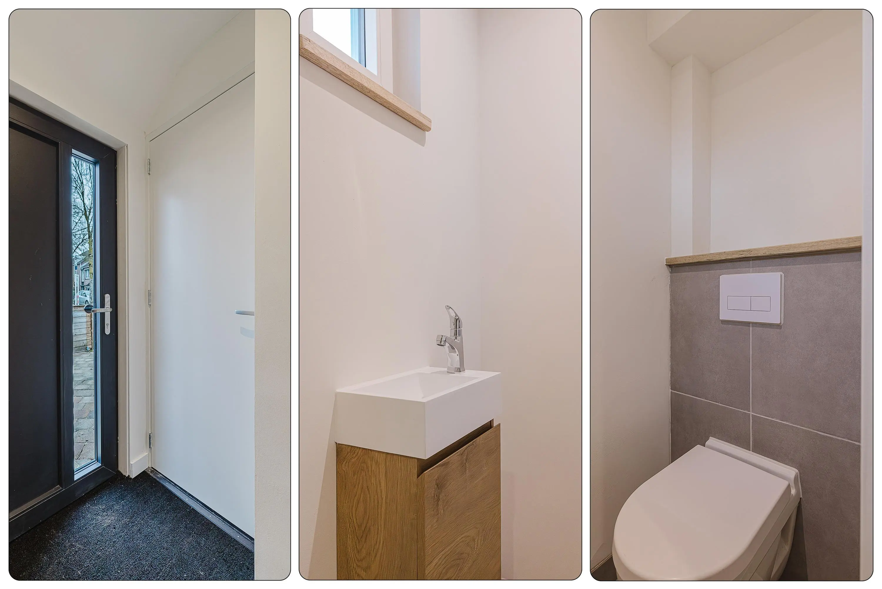 De badkamer is in lijn met de rest van de woning volledig vernieuwd en modern afgewerkt. Strak, fris en onderhoudsvriendelijk, precies wat je verwacht bij een instapklare woning.