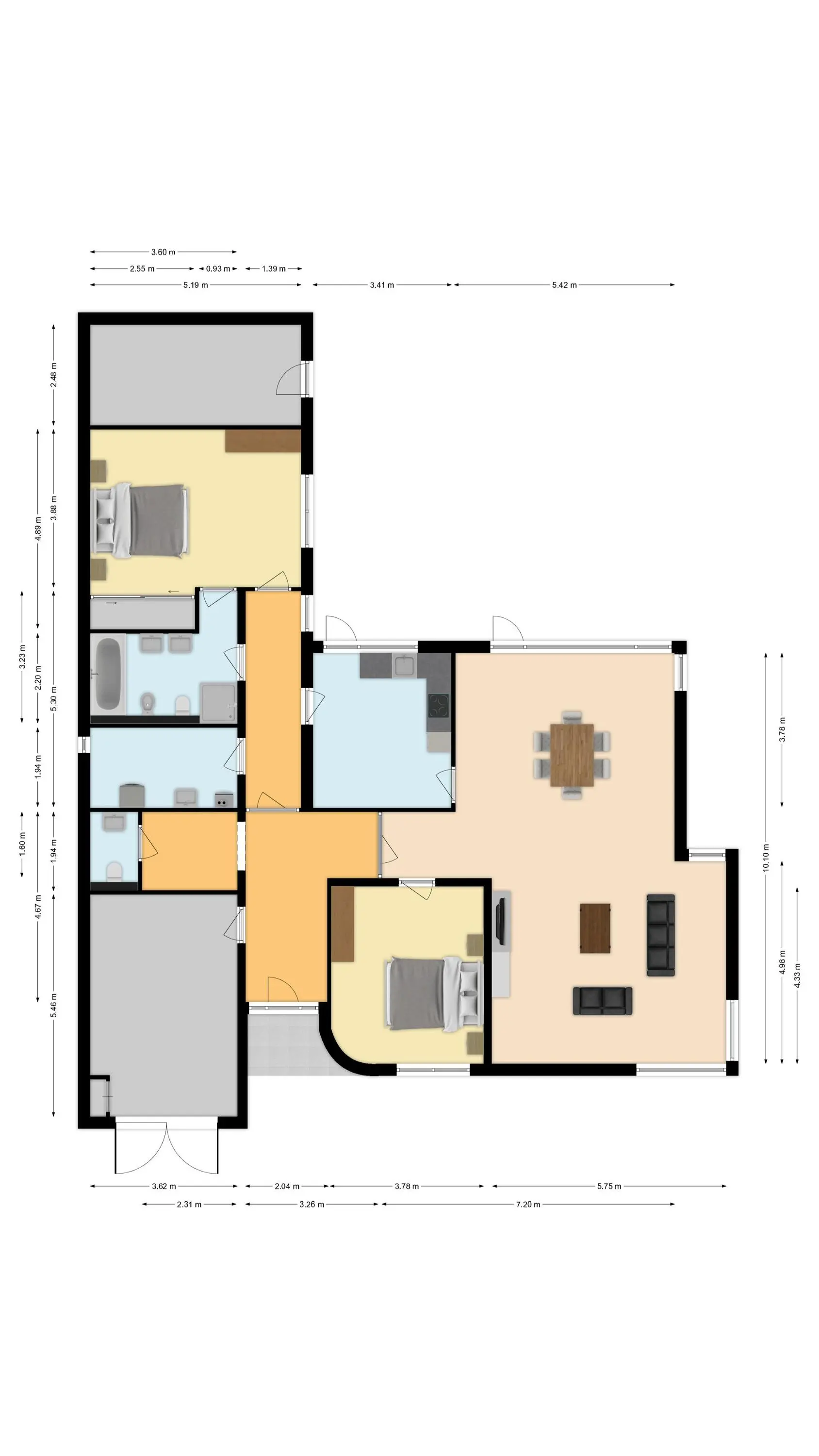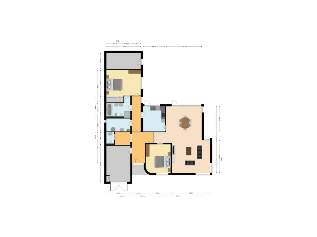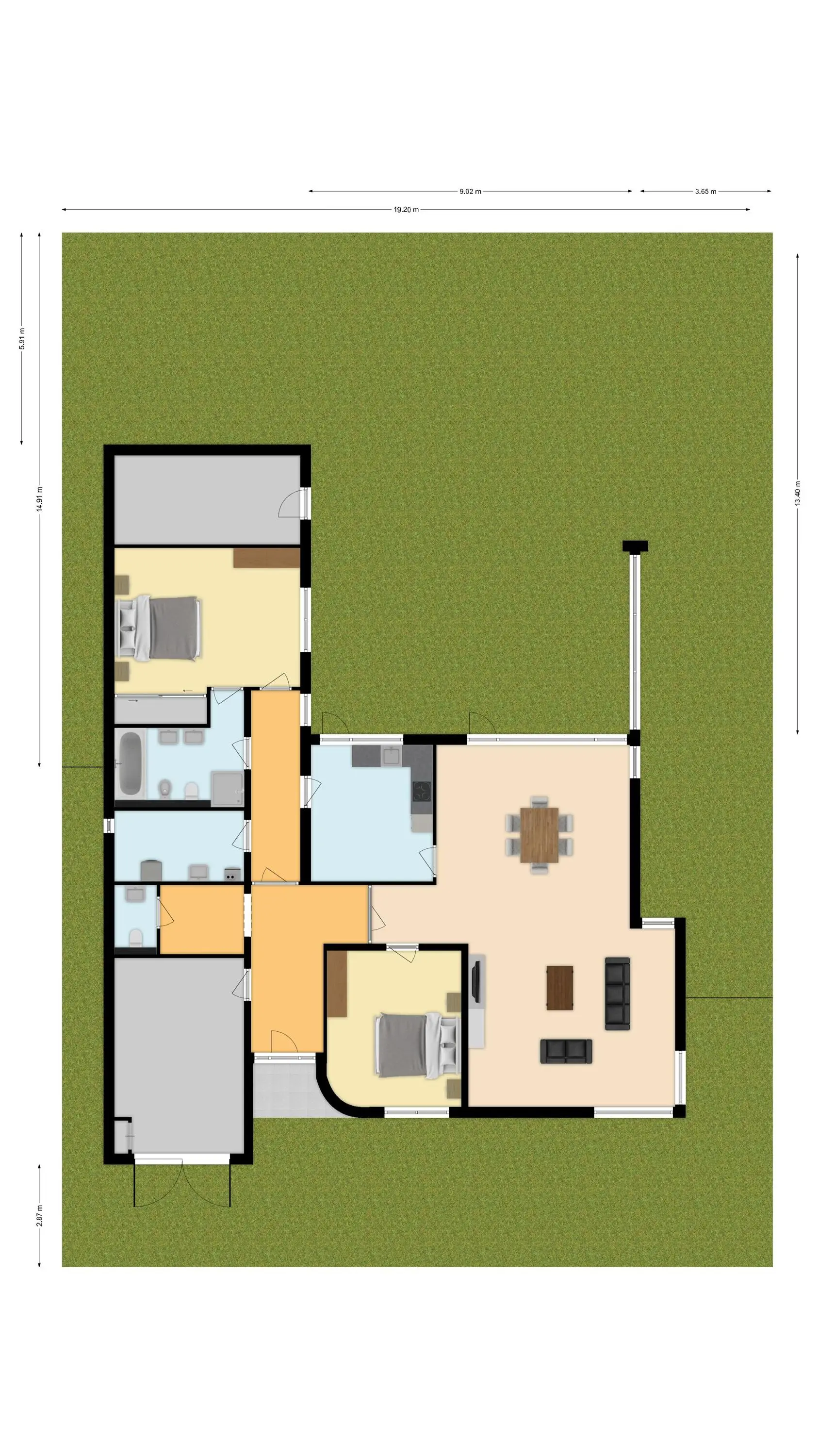 Vanuit de gang zijn de wasruimte, de badkamer, de tweede slaapkamer en tevens de keuken bereikbaar.